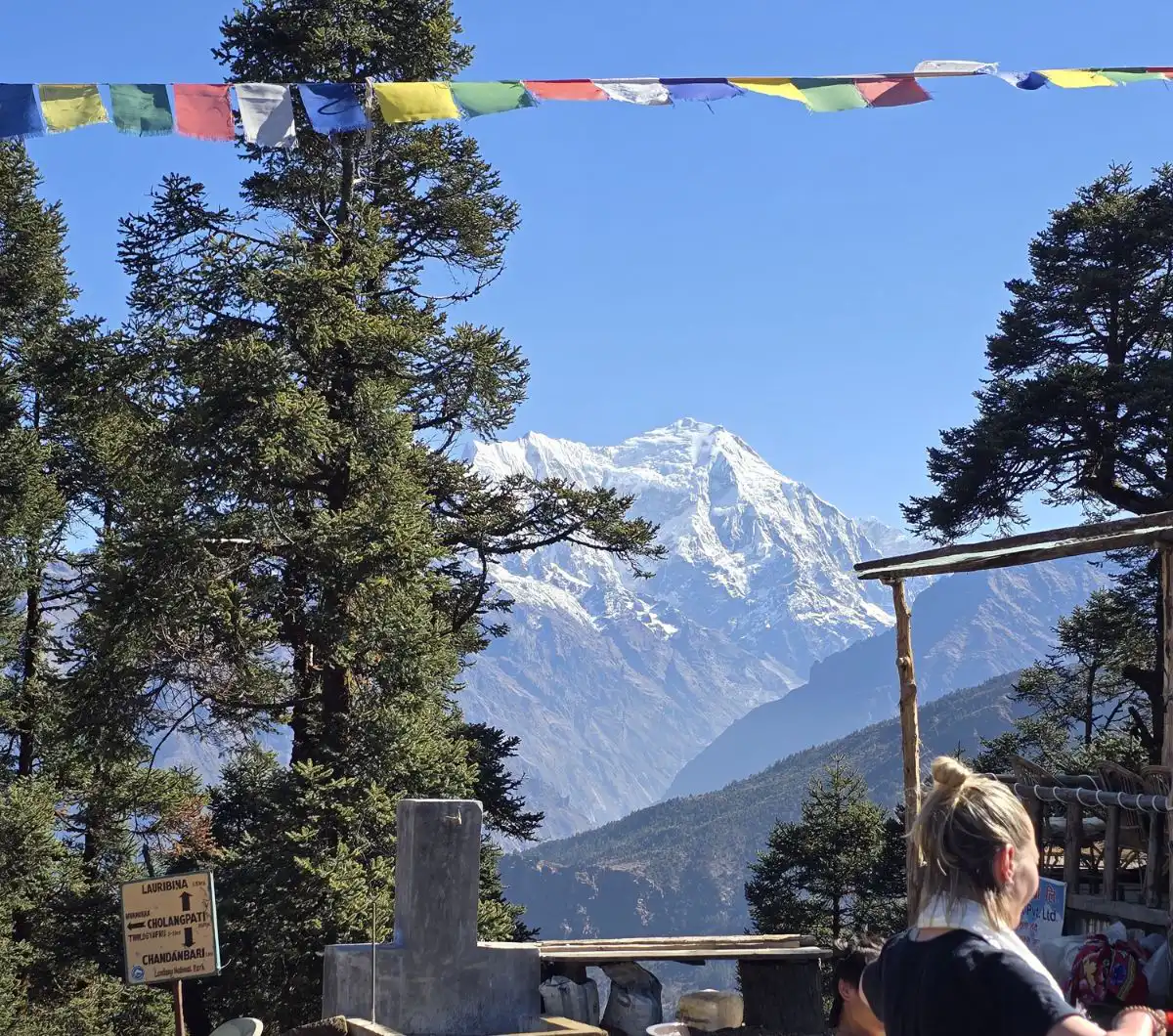 You’ll start the day at 8 by leaving the Thulo Syabru and begin an uphill climb through forest. As you gain altitude, you’ll pass by Garta village, a settlement with few houses, and then continue towards Phoprang Danda, an open viewpoint. Here you can take a break and enjoy the view of the Ganesh Himal, Langtang Himal, and the green valleys below.