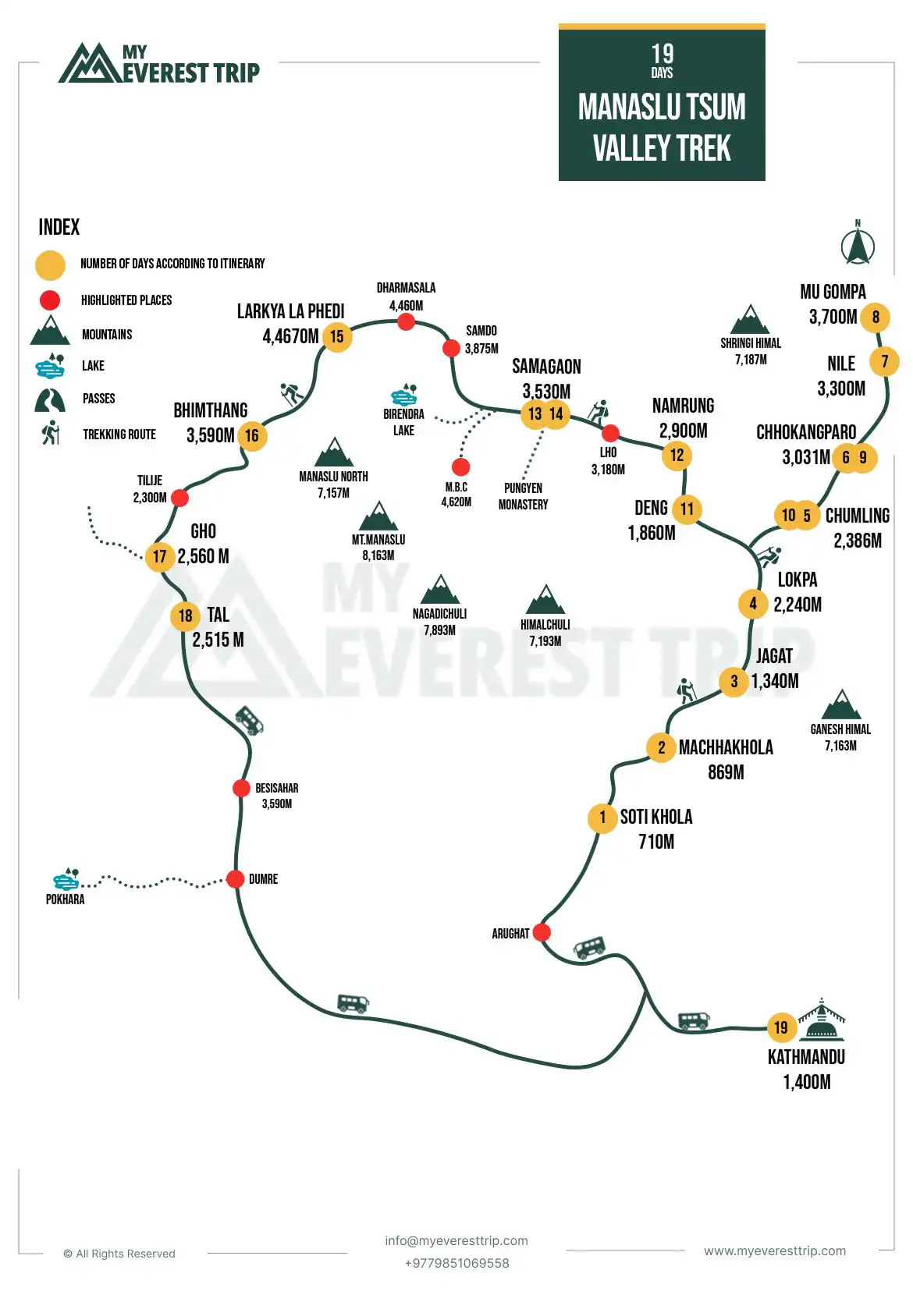 The trail essentially climbs toward the Larke-La Pass, the highest point of the Manaslu Tsum Valley Trek at 5,106 meters above sea level, providing breathtaking vistas of the snow-capped Himalayas everywhere.